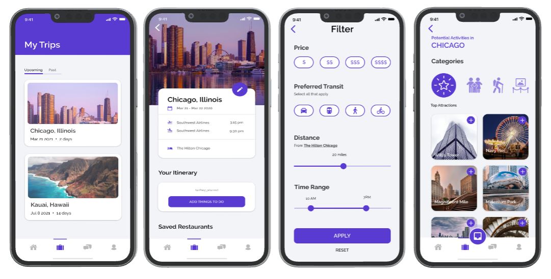 TripAdvisor is a global travel website with user-generated content, price comparison tools, and online reservations for transportation, lodging, travel experiences, and restaurants. Users can search for services during their travel by selecting their travel dates and browsing through different categories such as Day Trips, Attractions, Food & Drink, Shopping, and more. Travelers have the option to filter their search results and read posts (reviews) written by other travelers. Like Yelp, users can also optionally leave written reviews, rate their experiences, and upload photos of their travel with each trip. From the multiple features we studied, we decided on improving the Itinerary Feature. My team and I thought we could improve this feature by making it more streamlined and user-friendly.
